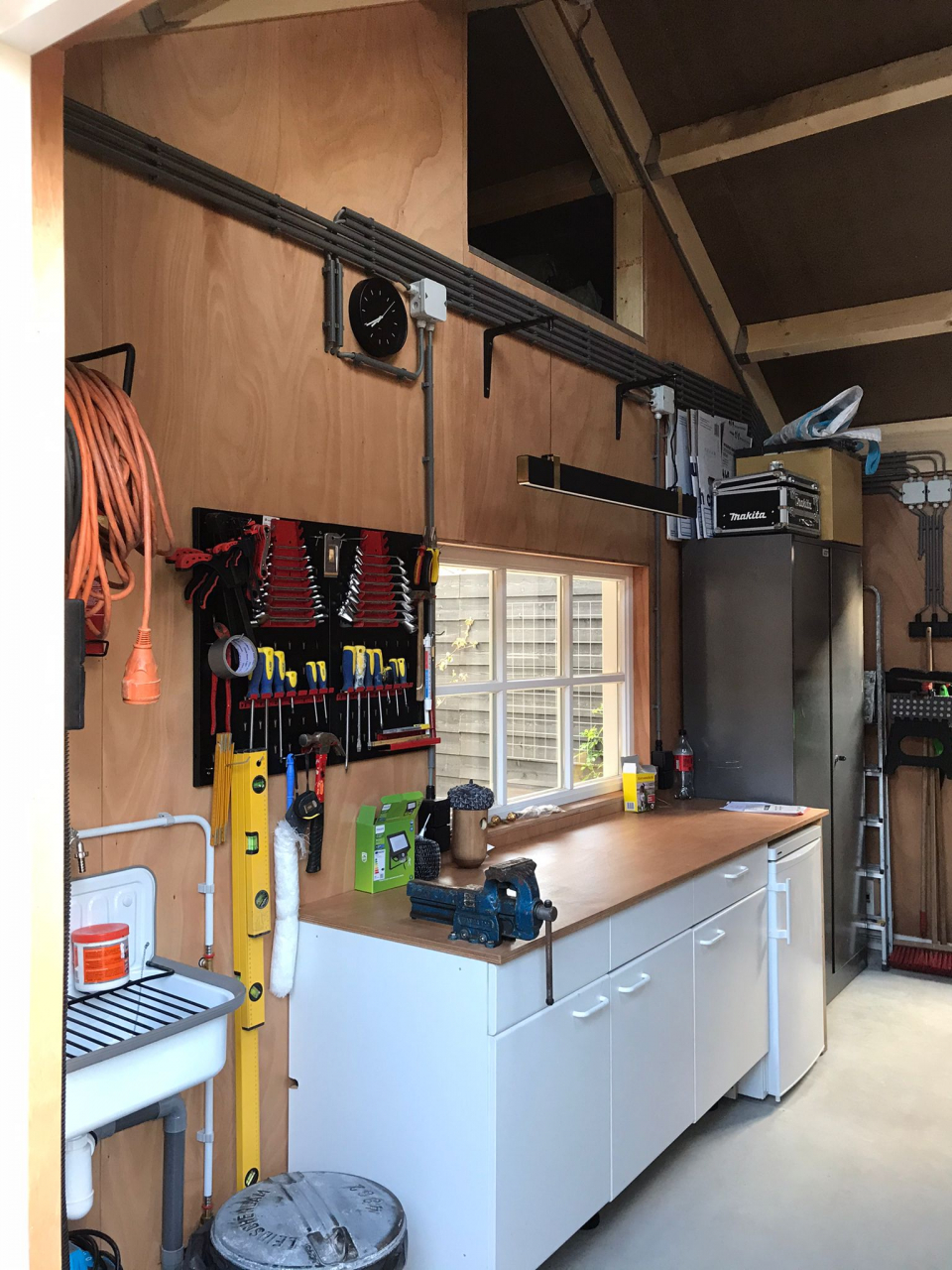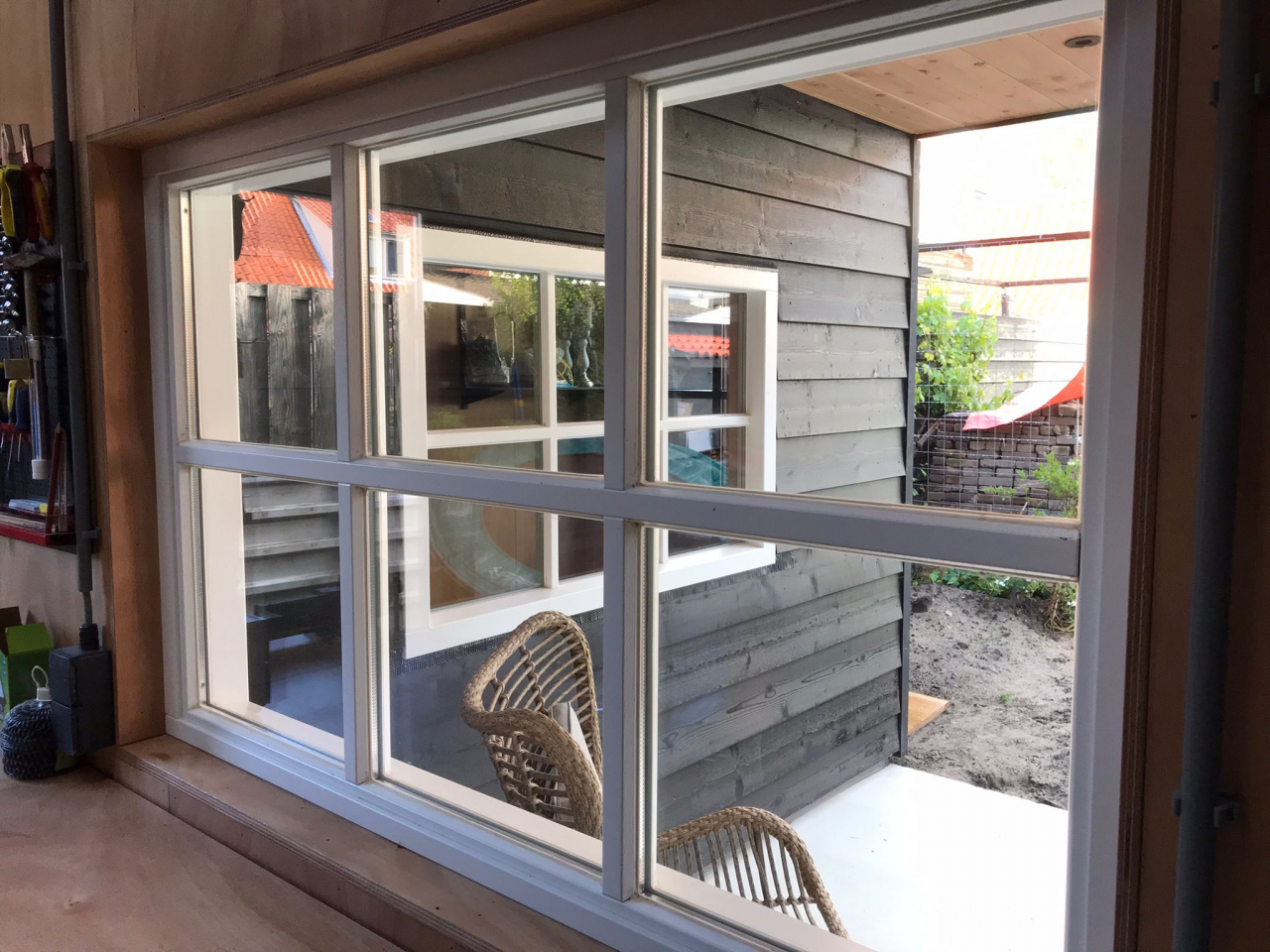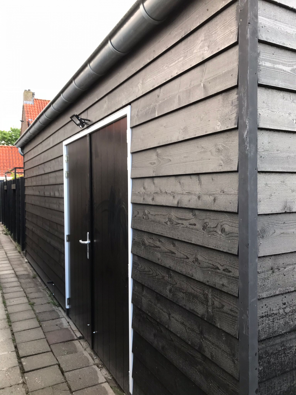 Een tuinschuur? Ja, dat is het echt. Plaatje hè?! In opdracht van Bouwbedrijf van Steenbergen bouwden wij deze houtskelet tuinschuur prefab en leverden deze af fabriek kant-en-klaar op locatie, waar de schuur met militaire precisie in deze smalle tuin in Zaltbommel werd opgebouwd door de opdrachtgever. En het resultaat mag er wezen! Een strakke eigentijdse tuinschuur door de zwarte rabatdelen gecombineerd met naturel hout en de terracotta dakpannen. Functioneel en een verrijking van je tuin.