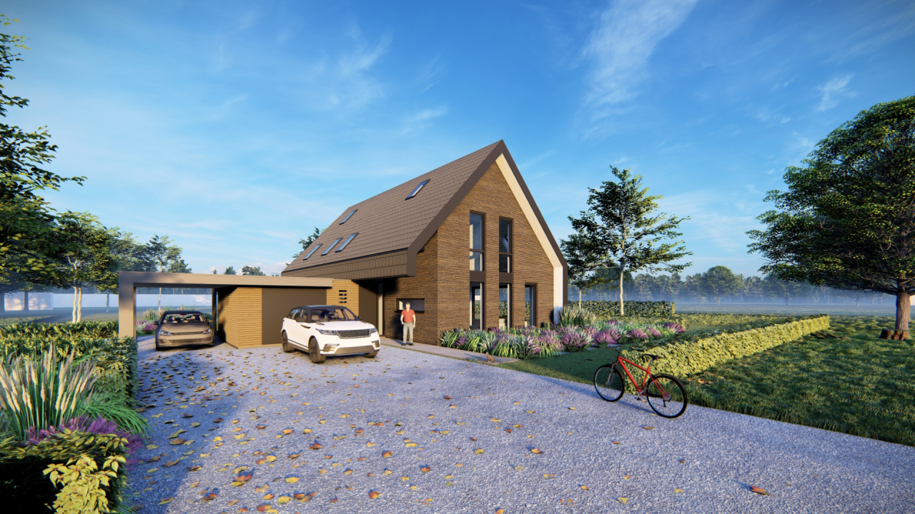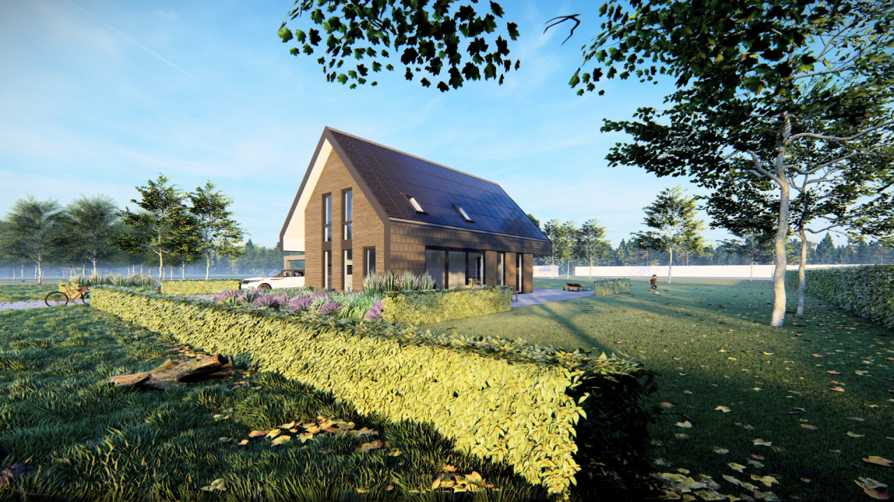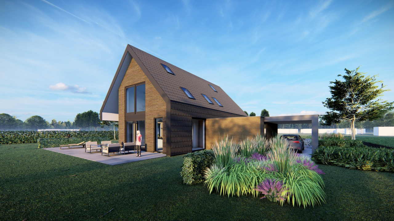 Deze fantastische woning laat goed zien wat er allemaal mogelijk is met houtskeletbouw. Let op de royale overstekken, het gebruik van hout voor de natuurlijke uitstraling en de grote raampartijen. Het gebruik van verschillende materialen geeft het geheel een eigentijds karakter. Kortom, een woning die perfect past in de omgeving!