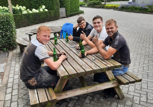 Niet altijd hoor, er wordt gewoon gewerkt en dat doen we nuchter. Maar zo nu en dan hoort een biertje er gewoon bij. Als afsluiting van een mooi project of tijdens de borrel. Meer dan verdiend.