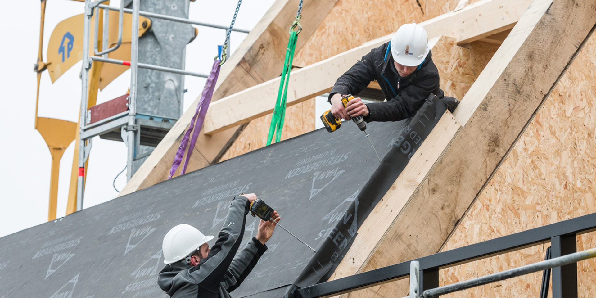 En het stopt niet bij één type bouw. Je werkt ook samen met Bouwbedrijf Van Steenbergen, het andere bedrijf. Dus afwisseling genoeg. De ene keer zet je met je collega’s een complete woning in elkaar, de andere keer sta je tussen het beton.